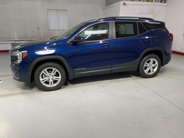 3 YEARS OF ONSTAR & CONNECTED SERVICES PLAN see onstar.com for information. Access the entire suite of OnStar Safety & Security Services and Connected Services. For retail customers this includes the OnStar Guardian app connectivity for available In-Vehicle Apps In-Vehicle Wi-Fi Hotspot data and Remote Access through the myGMC mobile app. Fleet customers will receive OnStar Vehicle Insights instead of Remote Access. Eligible vehicles receive 3-years of the OnStar and Connected Services Premium Plan including the Connected Vehicle Plan and the OnStar Safety & Security Plan. Connected Vehicle Plan includes connectivity for available in-vehicle apps Remote Access Plan (excluding Fleet vehicles which will receive OnStar Vehicle Insights) and In-Vehicle Wi-Fi Hotspot data. OnStar Safety & Security Plan includes access to the OnStar Guardian App Automatic Crash Response Emergency Services Crisis Assist Roadside Assistance and Stolen Vehicle Assistance.),JET BLACK PREMIUM CLOTH SEAT TRIM,ENGINE 1.5L TURBO DOHC 4-CYLINDER SIDI VVT (170 hp [127.0 kW] @ 5600 rpm 203 lb-ft of torque [275.0 N-m] @ 2000 - 4000 rpm) (STD),AUDIO SYSTEM 7" DIAGONAL GMC INFOTAINMENT SYSTEM includes multi-touch display AM/FM stereo includes Bluetooth streaming audio for music and most phones; featuring Android Auto and Apple CarPlay capability for compatible phones (STD),AXLE 3.47 FINAL DRIVE RATIO,SLE PREFERRED EQUIPMENT GROUP includes standard equipment,WHEELS 17" X 7" (43.2 CM X 17.8 CM) SILVER PAINTED ALUMINUM,SEAT POWER DRIVER LUMBAR CONTROL,SEAT DRIVER 8-WAY POWER WITH 2-WAY POWER LUMBAR,REMOTE START,AIR CONDITIONING DUAL-ZONE AUTOMATIC CLIMATE CONTROL with individual climate settings for driver and right-front passenger,DRIVER CONVENIENCE PACKAGE includes (BTV) Remote Start (CJ2) dual-zone automatic climate control (KA1) driver and front passenger heated seats (AG1) 8-way power driver seat adjuster (AL9) driver power lumbar control and (V2P) roof-mounted luggage rack side rails (Vehicles built prior to November 15 2021 and on or after February 28 2022 through March 13 2022 and after May 1 2022 include driver and front passenger heated seats. Certain vehicles built between November 15 2021 and February 27 2022 and after March 13 2022 through May 1 2022 will be forced to include (00V) Not Equipped with Driver and Front Passenger Heated Seats which removes driver and front passenger heated seats. Vehicles equipped with (00V) Not Equipped with Dr