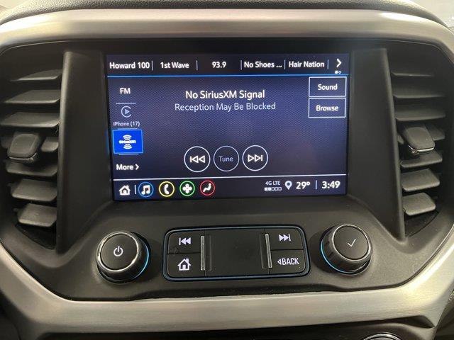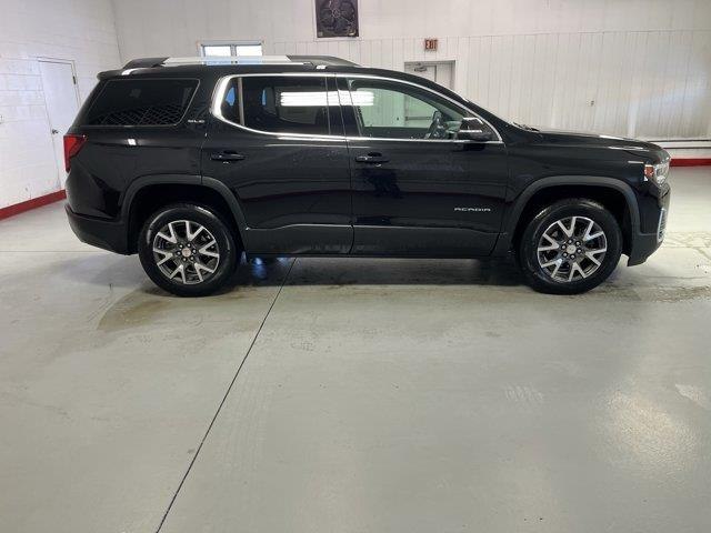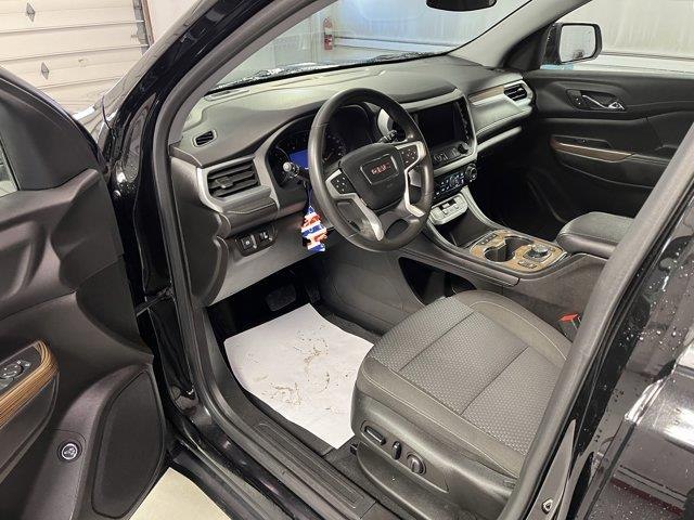 ROOF RAILS BRUSHED ALUMINUM,EBONY TWILIGHT METALLIC,SEATING 6-PASSENGER (2-2-2 SEATING CONFIGURATION) with 2nd row flat-folding captain's chairs with Smart Slide and 3rd row manual-folding 50/50 split-bench seat (STD),DRIVER CONVENIENCE PACKAGE includes (A2X) 8-way power driver seat adjuster (KA1) driver and front passenger heated seats (AL9) power driver lumbar control (BTV) Remote Start (TC2) hands-free power programmable liftgate and (KI6) 120-volt power outlet (Includes (V64) brushed aluminum roof rails.),SEATS HEATED DRIVER AND FRONT PASSENGER,AXLE 3.47 FINAL DRIVE RATIO,POWER OUTLET 120-VOLT 3-PRONG HOUSEHOLD STYLE located on the rear of center console,AUDIO SYSTEM 8" DIAGONAL GMC INFOTAINMENT SYSTEM includes multi-touch display AM/FM stereo includes Bluetooth streaming audio for music and most phones; featuring Android Auto and Apple CarPlay capability for compatible phones (STD),SLE PREFERRED EQUIPMENT GROUP includes standard equipment,LIFTGATE POWER PROGRAMMABLE HANDS FREE WITH EMBLEM PROJECTION,REMOTE START,TRANSMISSION 9-SPEED AUTOMATIC ELECTRONICALLY-CONTROLLED with 2.0L Turbo engine (STD),LICENSE PLATE BRACKET FRONT,WHEELS 18" (45.7 CM) MACHINED ALUMINUM WITH DARK ACCENTS (STD),ENGINE 2.0L TURBO 4-CYLINDER SIDI with Variable Valve Timing (VVT) (228 hp [171 kW] @ 5000 rpm 258 lb-ft of torque [349.8 N-m]) @ 1500 - 4000 rpm (STD),JET BLACK PREMIUM CLOTH SEAT TRIM,SEAT ADJUSTER DRIVER 8-WAY POWER,SEATS FRONT BUCKET (STD),TIRES P235/65R18 ALL-SEASON BLACKWALL (STD),GMC PRO SAFETY PLUS includes (UHY) Automatic Emergency Braking (UKJ) Front Pedestrian Braking (TQ5) IntelliBeam headlamps (UD5) Front and Rear Park Assist (UHX) Lane Keep Assist with Lane Departure Warning (UE4) Following Distance Indicator and (UEU) Forward Collision Alert; in addition to standard (UKC) Lane Change Alert with Side Blind Zone Alert and (UFG) Rear Cross Traffic Alert (Beginning with production starting on May 1 2023 no longer standard content and cannot be ordered. Refer to (PCM) Acadia Pro Safety Plus. Beginning with start of production through July 24 2022 certain vehicles will be forced to include (00Z) Not Equipped with Front and Rear Park Assist which removes Front and Rear Park Assist. See dealer for details or the window label for the features on a specific vehicle.),SEAT ADJUSTER POWER DRIVER LUMBAR CONTROL,Blind Spot Monitor,Lane Departure Warning,Cross-Traffic Alert,Lane Keeping Assist,Front Collision Mitigation,F