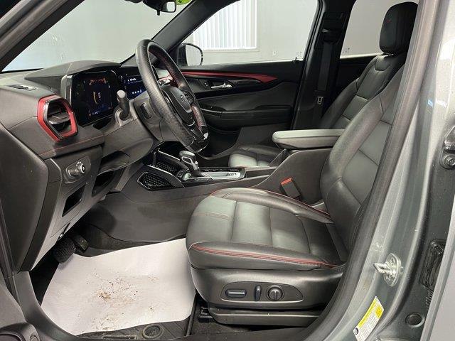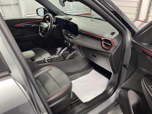 LICENSE PLATE BRACKET FRONT,LANE CHANGE ALERT WITH SIDE BLIND ZONE ALERT,RS PREFERRED EQUIPMENT GROUP Includes Standard Equipment,JET BLACK WITH RED ACCENTS EVOTEX SEAT TRIM,AUDIO SYSTEM 11" DIAGONAL HD COLOR TOUCHSCREEN AM/FM STEREO. Additional features for compatible phones include: Bluetooth audio streaming for 2 active devices voice command pass-through to phone wireless Apple CarPlay and wireless Android Auto capable (STD),REAR PARK ASSIST,WHEELS 19" (48.3 CM) HIGH GLOSS BLACK MACHINED ALUMINUM (STD),TRANSMISSION 9-SPEED AUTOMATIC (STD),ENGINE ECOTEC 1.3L I3 TURBO DOHC SIDI WITH VARIABLE VALVE TIMING (VVT) (155 hp [115 kW] @ 5600 rpm 174 lb-ft torque [236 N-m] @ 1600 rpm) (STD),DRIVER CONFIDENCE PACKAGE includes (UKC) Lane Change Alert with Side Blind Zone Alert (UFG) Rear Cross Traffic Alert and (UD7) Rear Park Assist,AXLE 3.17 FINAL DRIVE RATIO,SEATS FRONT BUCKET (STD),STERLING GRAY METALLIC,REAR CROSS TRAFFIC ALERT,MOSAIC BLACK METALLIC TWO-TONE ROOF,Lane Departure Warning,Lane Keeping Assist,Front Collision Mitigation,Front Collision Warning,Automatic Highbeams,Turbocharged,Keyless Start,All Wheel Drive,Power Steering,ABS,4-Wheel Disc Brakes,Aluminum Wheels,Tires - Front Performance,Tires - Rear Performance,Temporary Spare Tire,Automatic Headlights,Automatic Highbeams,Heated Mirrors,Power Mirror(s),Privacy Glass,AM/FM Stereo,Bluetooth Connection,Smart Device Integration,Satellite Radio,Requires Subscription,WiFi Hotspot,Bluetooth Connection,Smart Device Integration,Bucket Seats,Premium Synthetic Seats,Heated Front Seat(s),Power Driver Seat,Driver Adjustable Lumbar,Pass-Through Rear Seat,Rear Bench Seat,MP3 Capability,Auxiliary Audio Input,Floor Mats,Floor Mats,Heated Steering Wheel,Steering Wheel Audio Controls,Front Collision Warning,Adjustable Steering Wheel,Power Windows,Keyless Entry,Power Door Locks,Remote Engine Start,Cruise Control,Security System,A/C,Driver Vanity Mirror,Passenger Vanity Mirror,Front Collision Mitigation,Front Collision Warning,Front Collision Mitigation,Daytime Running Lights,Driver Air Bag,Passenger Air Bag,Front Side Air Bag,Rear Side Air Bag,Front Head Air Bag,Rear Head Air Bag,Passenger Air Bag Sensor,Knee Air Bag,Telematics,Requires Subscription,Back-Up Camera,Lane Departure Warning,Lane Keeping Assist,Front Collision Warning,Child Safety Locks,Driver Restriction Features,Tire Pressure Monitor,Tire Pressure Monitor,Security System,Telematics,Requires Subscription