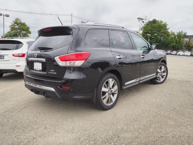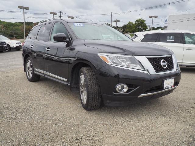 WAS $27,444, $3,300 below NADA Retail! CARFAX 1-Owner, Nissan Certified, Excellent Condition, ONLY 47,675 Miles! Navigation, Third Row Seat, Heated Leather Seats, 4x4, Power Liftgate, Heated Rear Seat, Rear Air, Trailer Hitch CLICK NOW! KEY FEATURES INCLUDE Leather Seats, Third Row Seat, Navigation, 4x4, Power Liftgate, Rear Air, Heated Driver Seat, Heated Rear Seat, Cooled Driver Seat, Back-Up Camera, Premium Sound System, Satellite Radio, iPod/MP3 Input, Bluetooth, Trailer Hitch Rear Spoiler, MP3 Player, Privacy Glass, Remote Trunk Release, Keyless Entry. OPTION PACKAGES ILLUMINATED KICK PLATES, NISSAN SHIP THROUGH FEE: RDR Type 2, REAR BUMPER PROTECTOR. Nissan Platinum with Magnetic Black exterior and Charcoal interior features a V6 Cylinder Engine with 260 HP at 6400 RPM*. Serviced here, Non-Smoker vehicle, Originally bought here, Clean CARFAX report! PRICED TO MOVE Reduced from $27,444. This Pathfinder is priced $3,300 below NADA Retail. SHOP WITH CONFIDENCE 7-year/100,000-Mile Limited Warranty, 167-Point Inspection and Reconditioning, 24-Hour Roadside Assistance and Towing Assistance, Rental Car, CARFAX Vehicle History Report, SiriusXM Satellite Radio with 3-month trial subscription OUR OFFERINGS We Make It Easy - If we advertise it, we'll have it when you get here. It's easy, it's honest and it's guaranteed! Contact us at 866-919-9061 for more information or to schedule a test drive. All payments are based on tier one credit approval, $2,500 cash or trade equity for 72 month financing at 3.99% interest rate. Payment does not include tax, title, registration or vehicle administration fee. Prices on Certified Pre-Owned Sentras, Maximas, Altimas, Rogues, Titans and LEAFs include a $450 reb Please confirm the accuracy of the included equipment by calling us prior to purchase.