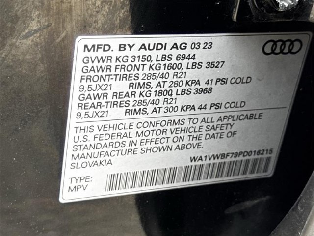 | VIN: | WA1VWBF79PD016215 |