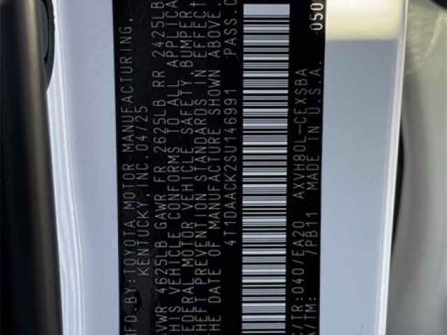 **ONE OWNER**, **CLEAN CARFAX!**, **BLUE TOOTH**, **BACK UP CAMERA**, **LEATHER INTERIOR**, **ALLOY WHEELS**, 2.5L 4-Cylinder 16V DOHC. 2025 Toyota Camry SE White FWD eCVT CARFAX One-Owner. 48/47 City/Highway MPG 2.5L 4-Cylinder 16V DOHCCOME EXPERIENCE JOE MYERS TOYOTA**SAVE Time and $Money, FRESH QUALITY INVENTORY EVERYDAY, DAILY SPECIALS!! @JOE MYERS TOYOTA WE ARE HERE FOR YOU!!! Se Habla Espan¦âol, Financing Available, VOLUME DEALER, BEST DEALS**Call Now! Recent Arrival! 48/47 City/Highway MPG All pricing is subject to change and may not include dealer added options.. Joe Myers Toyota is proudly serving Houston, Spring, Katy, Cypress, 290 HWY, FM1960, area and follow communities, Northwest Freeway, Cy Fair, Jersey Village, Tomball, The Woodlands, North Freeway, Klein, I-10, Katy, Missouri City, Sugarland, Waller, Brenham, Hempstead, Richmond, and College Station.