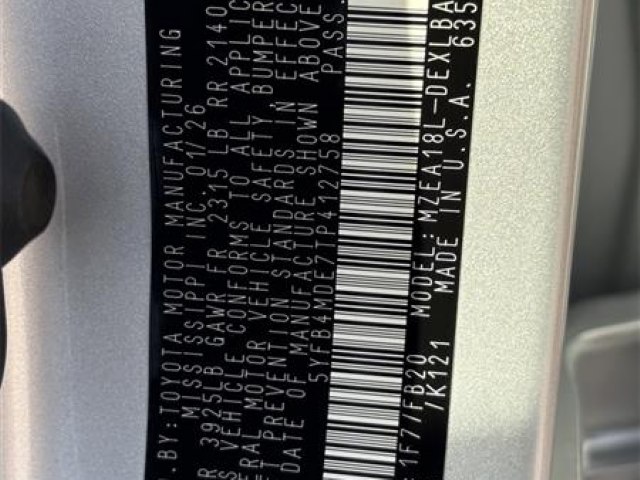 | VIN: | 5YFB4MDE7TP412758 |