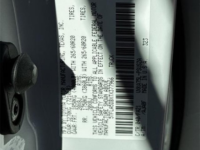 Bed Step|Fabric Seat Trim|Leather Seat Trim|Fabric Seat Trim (FB)|20"" Wheels|Wheels: 20"" TRD Sport Alloy|Dual-Step Running Board - Black|Radio: Audio Plus|Safety Connect|3.31 Axle Ratio|Radio: Audio Multimedia System|4-Way Manual Front Seats|18"" Alloy Wheels|SX Package|Wi-Fi Connect|4-Wheel Disc Brakes|Emergency communication system: Safety Connect (up to 10-year trial subscription)|Apple CarPlay/Android Auto|Auto High-beam Headlights|Exterior Parking Camera Rear|AM/FM radio: SiriusXM|Variably intermittent wipers|Trip computer|Traction control|Tilt steering wheel|Telescoping steering wheel|Steering wheel mounted audio controls|Split folding rear seat|Speed-sensing steering|Speed control|Security system|Remote keyless entry|Rear window defroster|Rear step bumper|Rear reading lights|Radio data system|Power windows|Power steering|Power driver seat|Power door mirrors|Passenger vanity mirror|Passenger door bin|Panic alarm|Overhead console|Overhead airbag|Outside temperature display|Occupant sensing airbag|Low tire pressure warning|Knee airbag|Illuminated entry|Heated door mirrors|Fully automatic headlights|Front wheel independent suspension|Front reading lights|Front fog lights|Front anti-roll bar|Dual front side impact airbags|Dual front impact airbags|Driver vanity mirror|Driver door bin|Delay-off headlights|Bumpers: body-color|Brake assist|Automatic temperature control|Alloy wheels|ABS brakes|Voltmeter|Tachometer|Front Center Armrest|Front Bucket Seats|Electronic Stability Control|Air Conditioning|9 Speakers