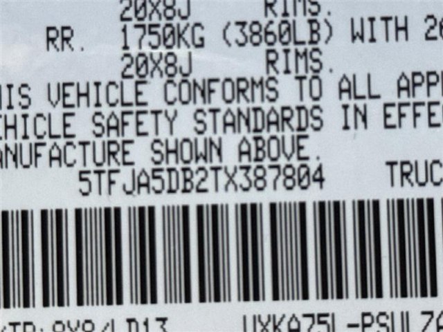 VIN:5TFJA5DB2TX387804