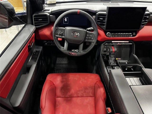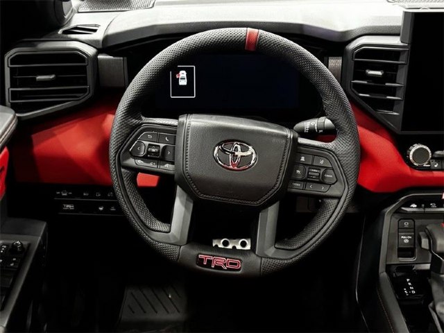 Bed Step|SofTex Seat Trim|TRD Cast Aluminum Running Board|3.31 Axle Ratio|Radio: Premium Audio with JBL|Heated and Ventilated Front Bucket Seats|Wheels: 18"" Black Forged Aluminum BBS|TRD Pro Package|Wheel Locks|12 Speakers|Emergency communication system: Safety Connect (up to 10-year trial subscription)|Navigation system: Drive Connect Cloud Navigation (1-year trial subscription)|Apple CarPlay/Android Auto|Auto High-beam Headlights|Exterior Parking Camera Rear|AM/FM radio: SiriusXM|Auto-dimming Rear-View mirror|Front beverage holders|Ventilated front seats|Variably intermittent wipers|Turn signal indicator mirrors|Trip computer|Traction control|Tilt steering wheel|Telescoping steering wheel|Steering wheel mounted audio controls|Sport steering wheel|Split folding rear seat|Speed-sensing steering|Speed control|Security system|Remote keyless entry|Rear window defroster|Rear step bumper|Rear seat center armrest|Rear reading lights|Radio data system|Power windows|Power steering|Power passenger seat|Power moonroof|Power driver seat|Power door mirrors|Passenger vanity mirror|Passenger door bin|Panic alarm|Overhead console|Overhead airbag|Outside temperature display|Occupant sensing airbag|Memory seat|Low tire pressure warning|Leather steering wheel|Knee airbag|Illuminated entry|Heated front seats|Heated door mirrors|Garage door transmitter: HomeLink|Fully automatic headlights|Front wheel independent suspension|Front reading lights|Front fog lights|Front dual zone A/C|Front anti-roll bar|Dual front side impact airbags|Dual front impact airbags|Driver vanity mirror|Driver door bin|Delay-off headlights|Bumpers: body-color|Brake assist|Automatic temperature control|Auto-dimming door mirrors|Alloy wheels|ABS brakes|Voltmeter|Tachometer|Leather Shift Knob|Front Center Armrest|Front Bucket Seats|Electronic Stability Control|Air Conditioning|4-Wheel Disc Brakes